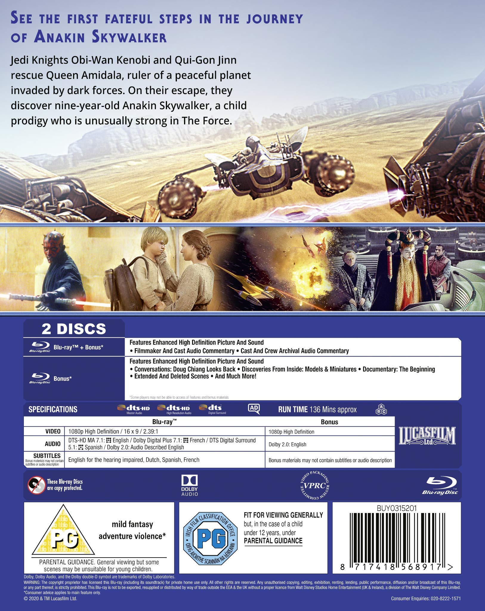 Star Wars Episode I The Phantom Menace [Blu-ray] [2020] [Region Free]