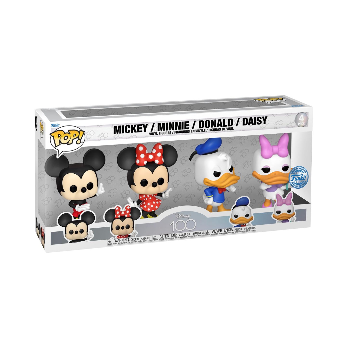 Funko Pop! Disney 100 - Daisy and Donald Duck, Minnie and Mickey Mouse 4 Vinyl Action Figure Pack
